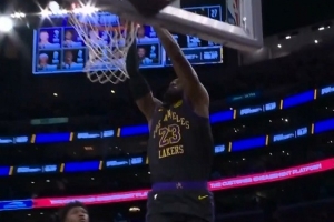 探囊取物!拉拉维亚抢断反击送妙传 詹姆斯起飞双手暴扣2分到手