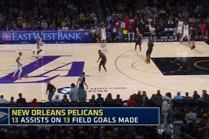团队作战!鹈鹕首节有13个运动战进球 全部来自助攻