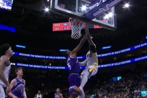 看呆追梦!小佩顿接球杀入篮下迎着科迪战斧劈扣!