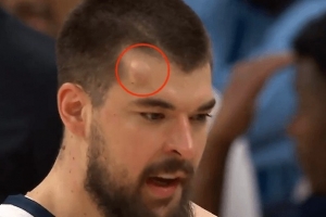 “头上有犄角!”祖巴茨防守时被克林根打出包 回更衣室