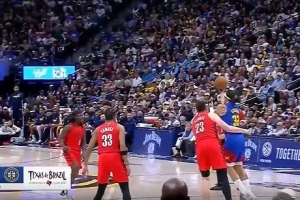 写意!阿隆·戈登拼到球权随即脑后妙传 约基奇篮下轻松上进