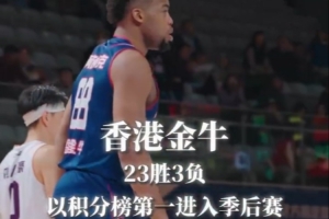 香港金牛以联盟积分榜第一23胜3负的战绩成功晋级季后赛!