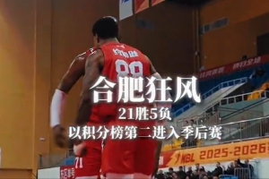 合肥狂风以21胜5负 联盟积分榜第二的战绩成功晋级季后赛!