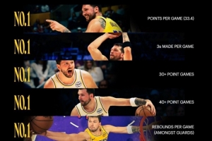 直播吧3月25日讯 今天,湖人官方晒出了东契奇的几项数据记录,并写道:“数据不会说谎。”详情如下: