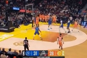 泰山压顶!米切尔送抛传 托布起飞力压贝恩双手空接隔扣