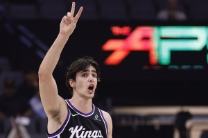 直播吧3月25日讯 NBA常规赛,国王客场90比134不敌黄蜂。不过42号秀雷诺延续着出色表现,出战29分钟32秒,14投6中,三分3投1中,罚球4罚3中,得到16分7篮板。