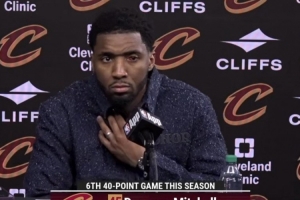 直播吧3月25日讯 NBA常规赛,骑士136-131战胜魔术。赛后,米切尔接受采访。