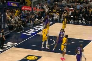 🤯这球帅炸!布朗尼空切暴起单臂炸扣引爆全场&詹姆斯全程目睹