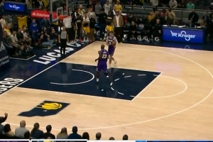空篮没上!湖人前场2打0 詹姆斯助攻拉拉维亚扣篮