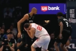 看着挺疼!戈贝尔击中申京面部 被吹进攻犯规&没有升级