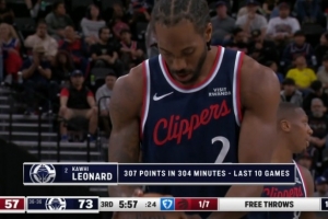 这效率吓人!伦纳德过去10场共出战304分钟 砍下307分!