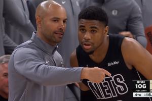 演都不演了?篮网最后先慢三步上篮过桥 然后后场扔三分直接结束