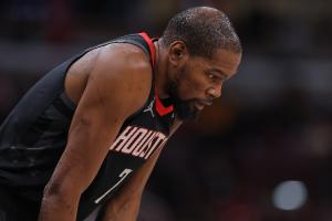 直播吧3月26日讯 NBA常规赛,火箭客场108-110加时惜败森林狼,赛后杜兰特接受采访。
