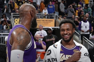 直播吧3月27日讯 在昨日湖人137-130客场击败步行者的比赛中,湖人球星詹姆斯与儿子布朗尼一同出场。赛后。詹姆斯接受了The Athletic湖人随队记者 Dan Woike的独家采访。