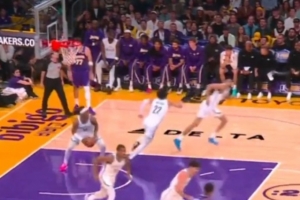 干啥呢?东契奇投篮不中后向裁判抱怨 湖人连续出现4防5