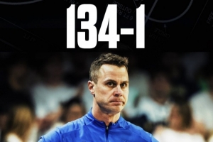 据统计,杜克大学成为NCAA疯狂三月历史中唯一一支半场领先15+却输球的1号种子,此前半场领先15+的1号种子134胜0负。