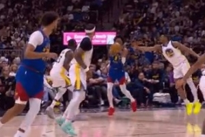 寸土必争!双方拼抢出界吹争球 勇士挑战成功拿回球权