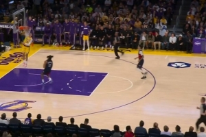 精准制导!詹姆斯转身送长传 拉拉维亚接球反击单臂飞扣