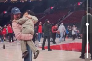 混得太熟了!杨瀚森女友抱着利拉德儿子在场边转圈圈