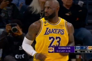 彻底花了!詹姆斯三分球再中 湖人一波10-2领先奇才20分