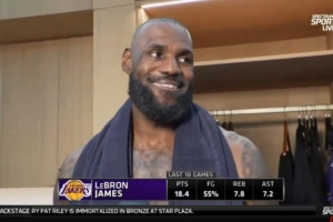 直播吧3月31日讯 NBA常规赛,湖人队120-101战胜奇才队。赛后,詹姆斯接受了采访。以下为完整版。