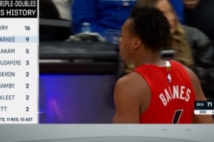 队史第二位!斯科蒂·巴恩斯拿到生涯第9次三双 仅次洛瑞16次