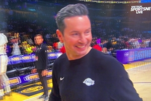 直播吧4月13日讯 NBA常规赛,湖人半场62-45领先爵士。主帅雷迪克在中场时接受了采访。