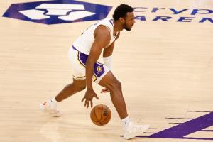 第三节,湖人后卫布朗尼表现极为抢眼,进攻端高效输出的同时还能穿针引线盘活球队,单节6投4中、三分4中3拿到11分1篮板3助攻1抢断。