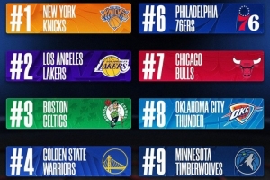 直播吧4月13日讯 今天,NBA官方公布了本赛季NBA球队周边销量TOP10排行榜。