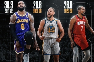 历史37岁球员场均得分TOP3:詹姆斯居首 本赛季库里KD分列二三!