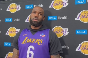 直播吧4月17日讯 今日,湖人球星詹姆斯在训练后接受了采访。