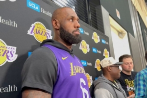 直播吧4月17日讯 今日,湖人球星詹姆斯在训练后接受了采访。