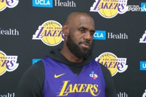 直播吧4月17日讯 今日,湖人球星詹姆斯在训练后接受了采访。