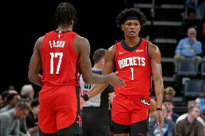 直播吧4月17日讯 火箭球员阿门当地时间周四接受媒体采访。