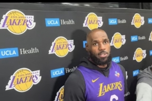 直播吧4月17日讯 今日,湖人球星詹姆斯在训练后接受了采访。