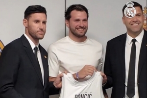 重回故地!东契奇今日回皇马观战欧冠 手持个人7号球衣与德约合影