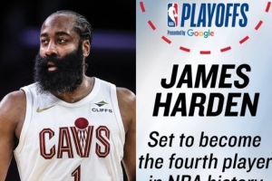 直播吧4月17日讯 季后赛即将开打,NBA官方分享了一个哈登的季后赛纪录。