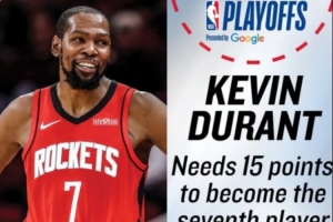 今天,NBA官方预警,杜兰特目前季后赛总得分为4985分,他距离成为季后赛历史第七位5000分先生还差15分。