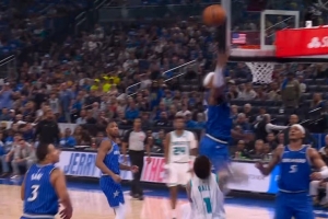 送人头!拉梅洛·鲍尔持球突破 上篮遭小卡特遮天血帽