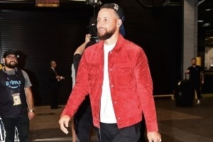 赛前,勇士球星库里入场时上脚了对方主将布克的战靴,他所穿的是布克2024年“奥运系列”配色的Book 1战靴。
