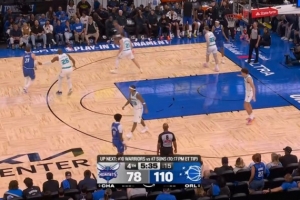 比赛没悬念了~末节还剩5分35秒 黄蜂&魔术相继换上替补练兵