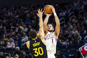 直播吧4月18日讯 NBA附加赛,勇士首节15-33落后太阳。
