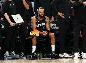 直播吧4月18日讯 NBA附加赛,太阳半场50-45领先勇士。
