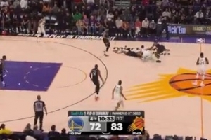 好在是没丢!古德温倒地逼抢库里形成争球 库里跳赢