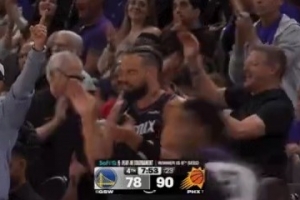 装到了!杰伦·格林底角晃飞追梦命中个人第8记三分 狄龙疯狂鼓掌