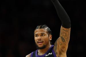 直播吧4月18日讯 太阳111-96击败勇士,赛后,太阳后卫杰伦·格林接受媒体采访,他本场打出生涯代表作,8个三分平附加赛球员单场历史纪录。