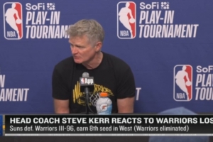 直播吧4月18日讯 NBA附加赛,勇士96-111不敌太阳,无缘季后赛。赛后史蒂夫·科尔接受了媒体采访,以下为采访全文。