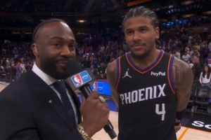 直播吧4月18日讯 NBA附加赛,太阳111-96击败勇士,赛后杰伦·格林在赛场边接受了媒体采访,以下为采访全文。