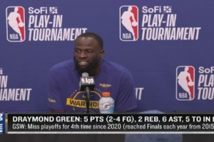 直播吧4月18日讯 NBA附加赛,勇士96-111不敌太阳。赛季结束。赛后德雷蒙德·格林接受了媒体采访,以下为采访全文。