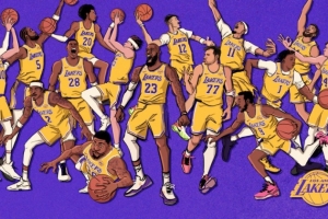 直播吧4月18日讯 今日,湖人官推晒出一张全员漫画海报,预热季后赛。